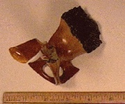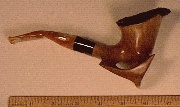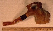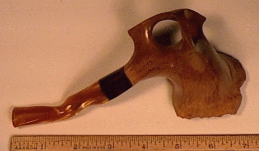 Beautiful 2 bridge pipe with deep reddish bottom that gets lighter toward the top. Amber lucite stem with swirled red/black lucite shank extension.