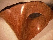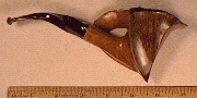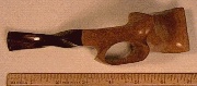 Tight straight grain with single thumb bridge and burgundy lucite stem. Right side panel stained high-contrast black.