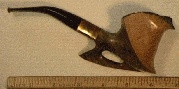Front and right side panel natural color, left side and shank black with carved area top left of shank. Gold lucite shank extension with German rubber stem.