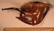 A large, unparalled pipe. Flawless, spectacular specimen grade briar with gorgeous, tight grain all over. 4 bridges with contrasting walnut stain accents. Burgundy lucite stem.